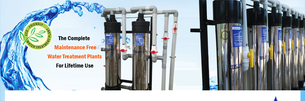 Richu's Water Treatment Plants brings to you the power behind purification - water purification technology at its best! Water purification involves the process of removing undesirable chemicals, materials, and biological contaminants from raw water. Richu´s Water Treatment Plants incorporates most innovative modern technologies evolved through extensive research and development activities, to produce purified water!